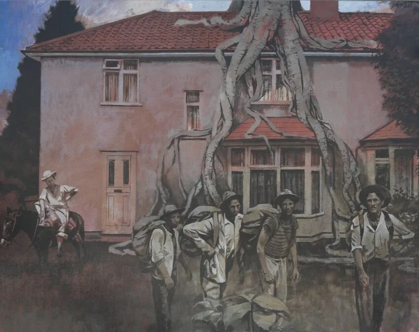 The facades of British suburbia as a trope of mystery, private dramas and fear is a recurring theme in British literary and popular cultures. Though a symbol of contentment and the satiations of material privilege, the facades can come to signify the opposite: fragile signs of dullness and repressive conformities. In this respect Klose's works have a distant corollary in Eric Fischl's painterly explorations of the anxieties of affluence in white America. And both artists share a cinematic approach to image-making. But, unlike Fischl, Klose eschews the visceral or expressive for the cool and considered. His method of appropriating and assembling disparate images from Internet searches, personal archives and drawings reveals a self-consciousness about how images mediate experience- seemingly reflecting our selves and our lives but remaining beyond strict definition to instead appear metaphoric.